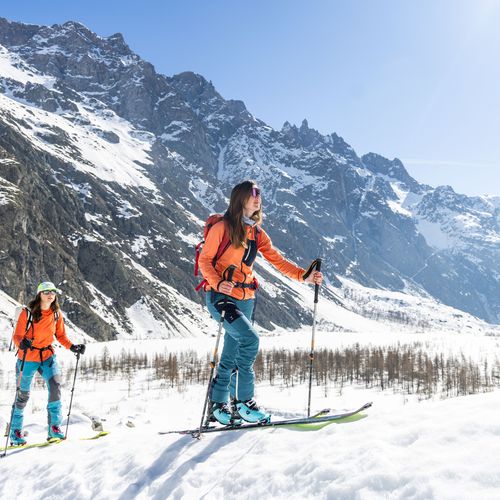Ski across the Glacier Noir towards the Col de la Temple to enjoy an exceptional panoramic view at the foot of the legendary north faces of Pelvoux, Pic Sans Nom, and Ailefroide.