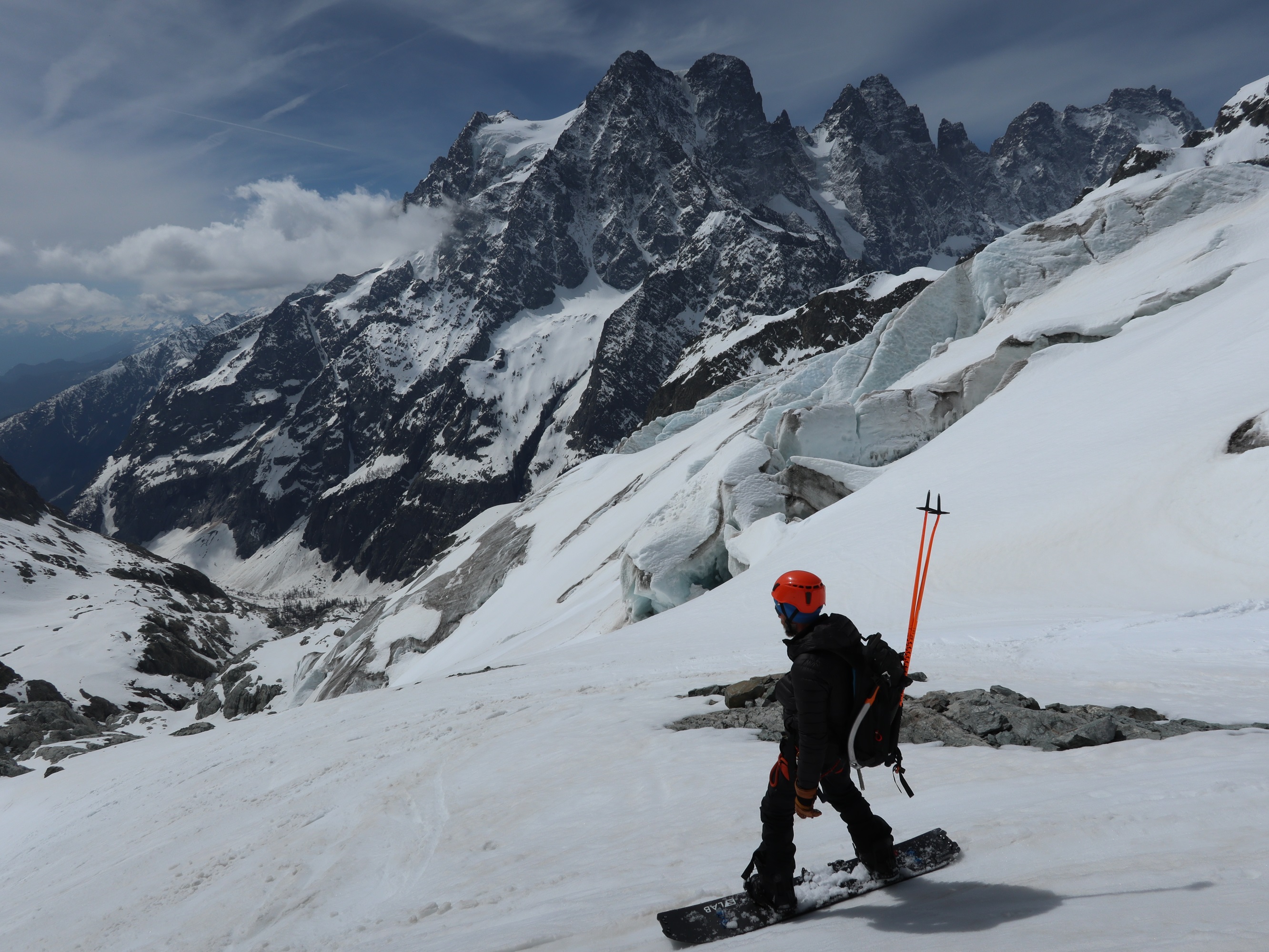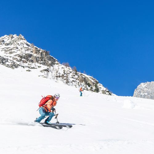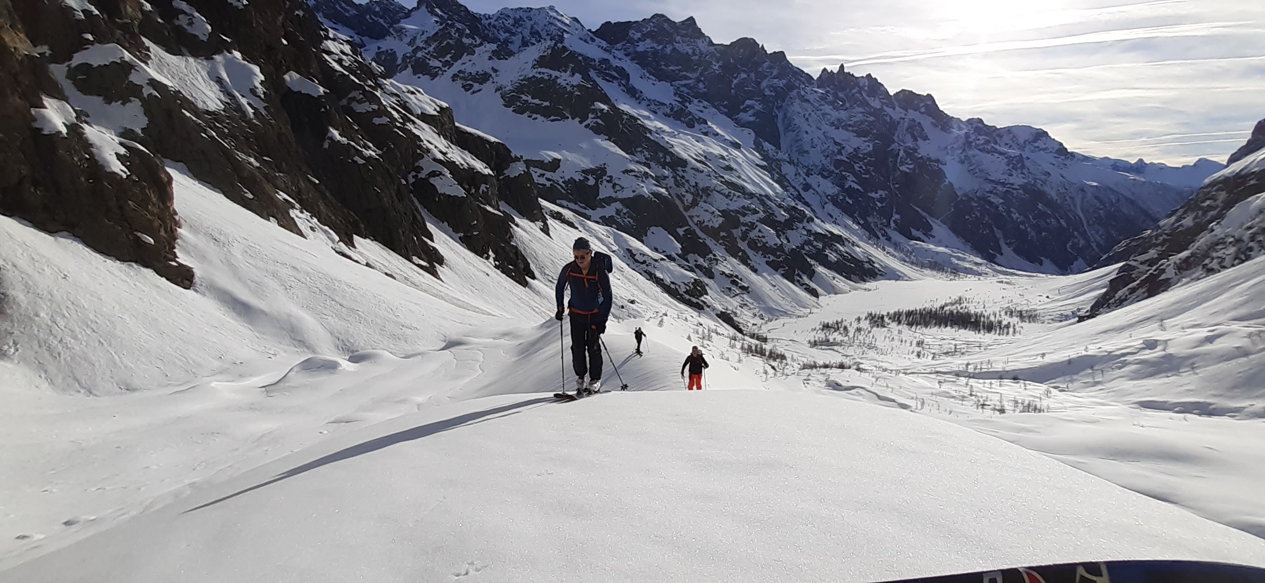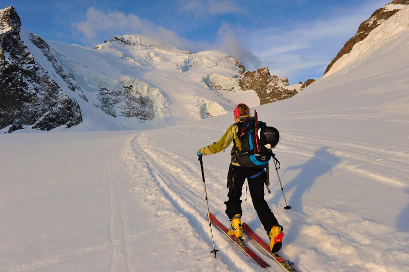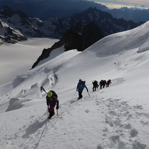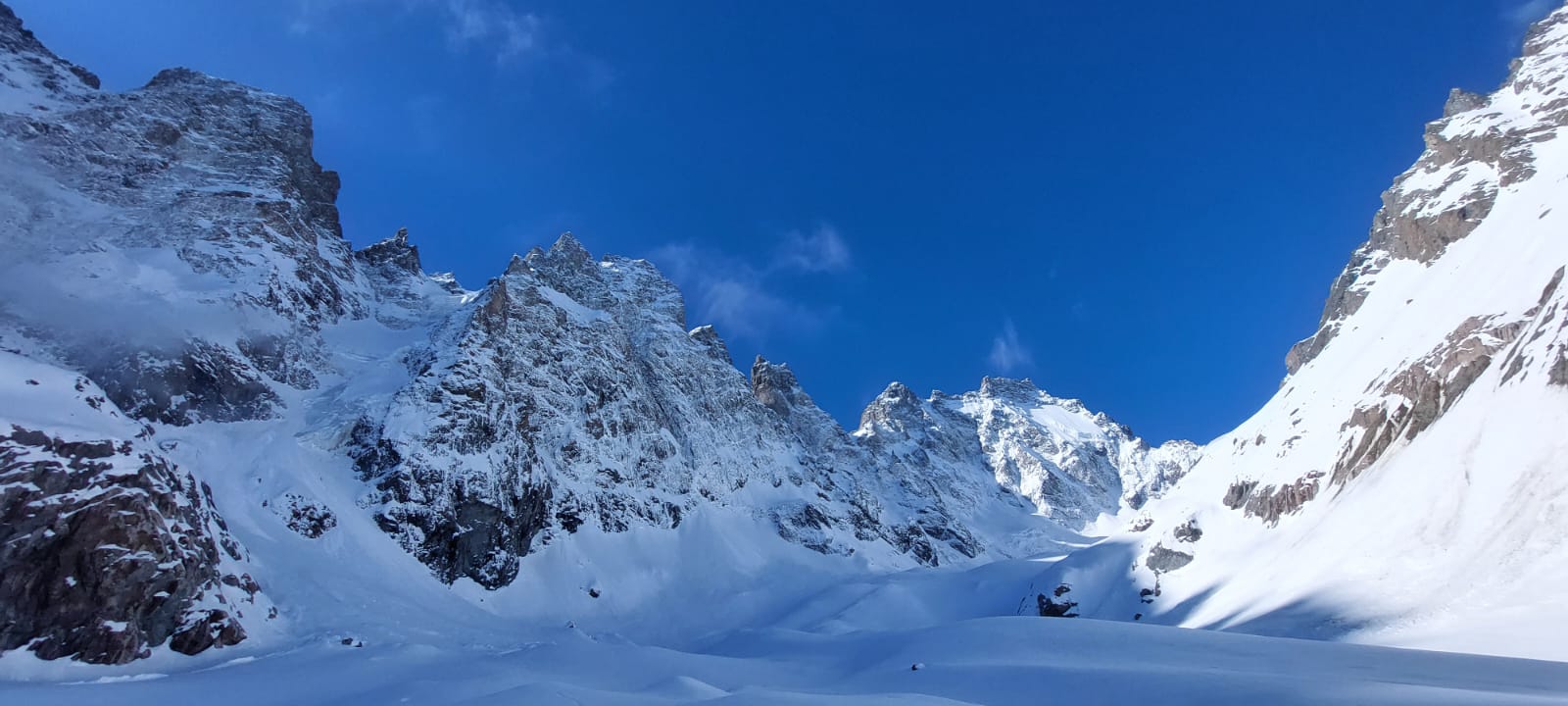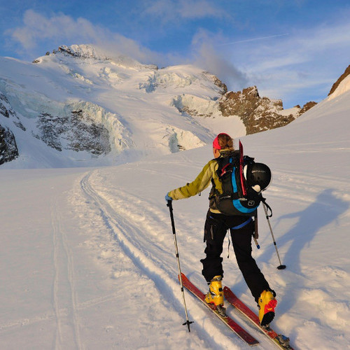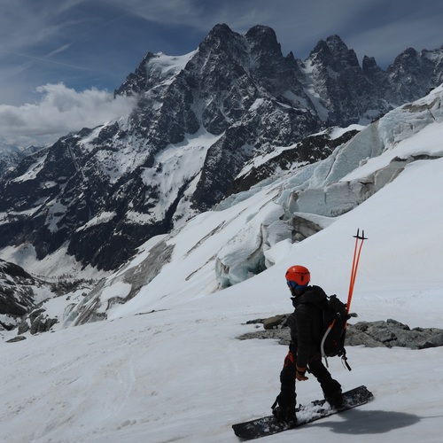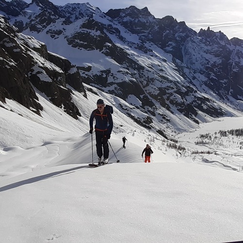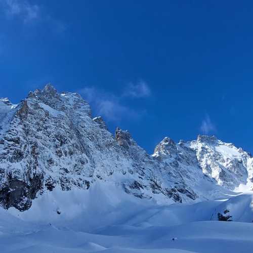 Vous parcourez à ski le glacier noir en direction du col de la Temple pour découvrir un panorama exceptionnel au pied des faces nord mythique du Pelvoux, du Pic Sans Nom et des Ailefroide.